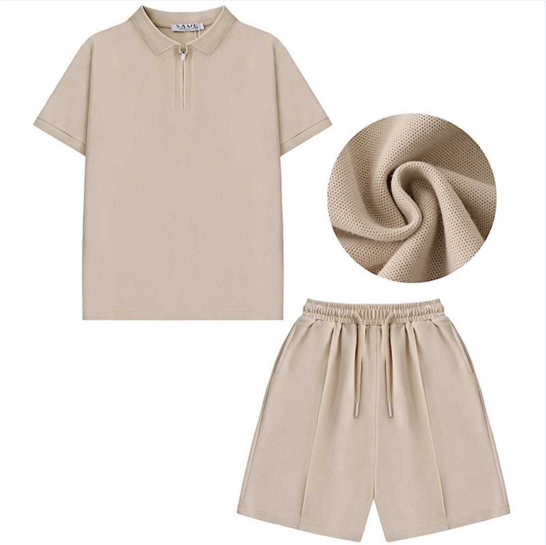 Boys set , zipped polo top and drawstring shorts. True to size – good for sizing.