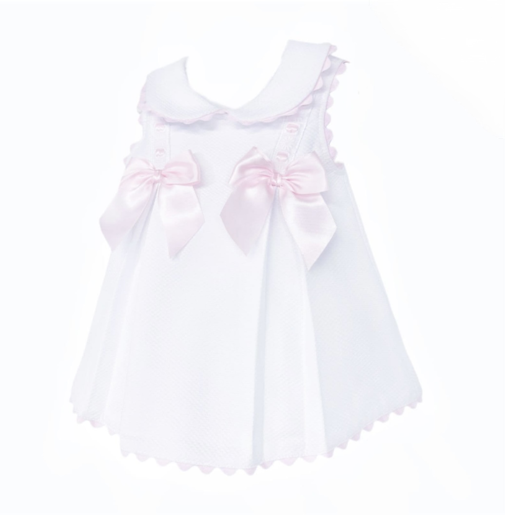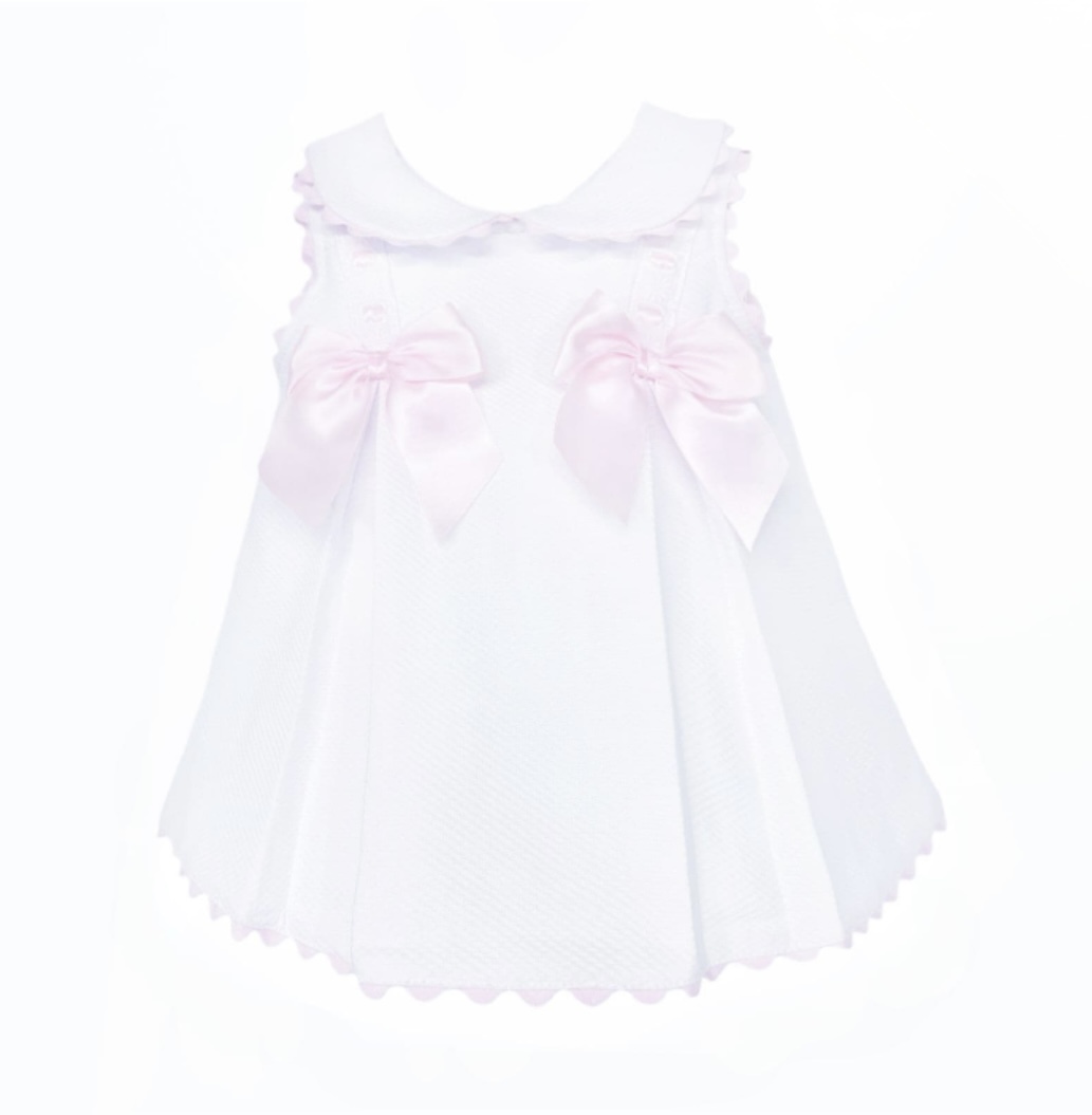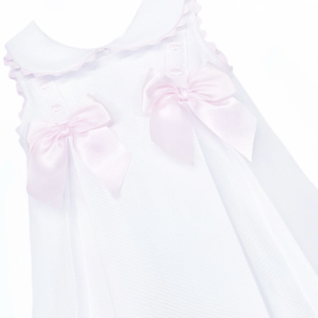 White Waffle With Pink Bow Dress